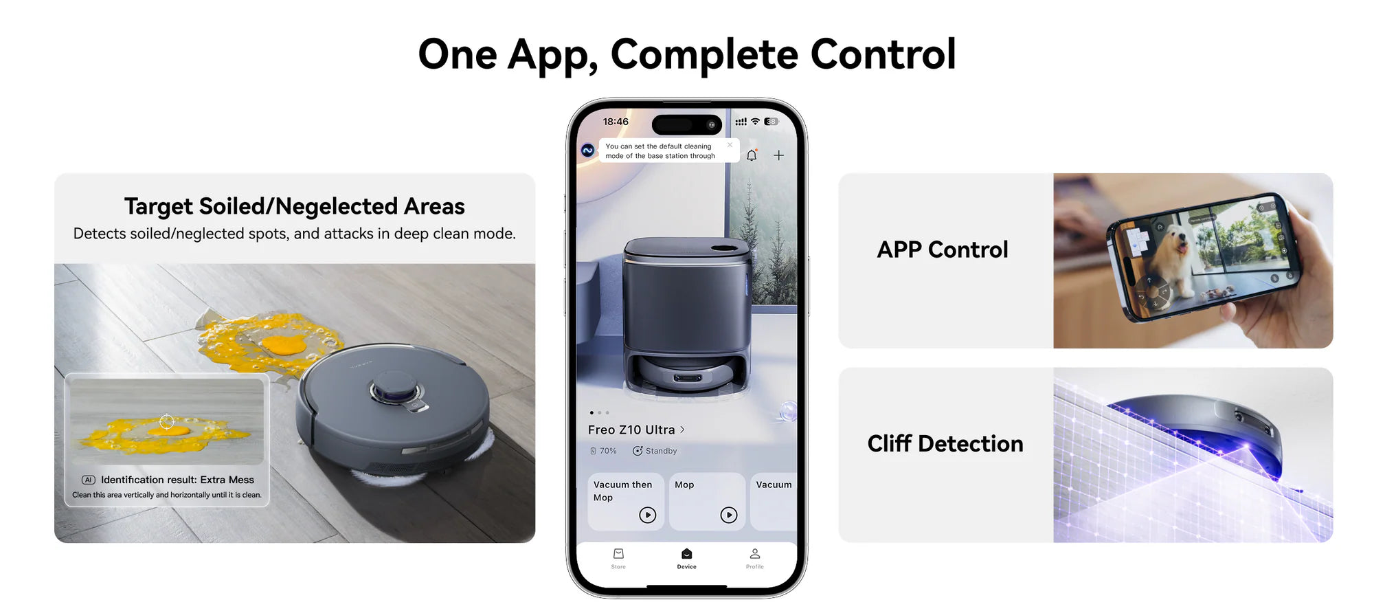 Manage your cleaning with ease using voice commands. Adjust your preferences effortlessly through Alexa, Siri, or Google Home.