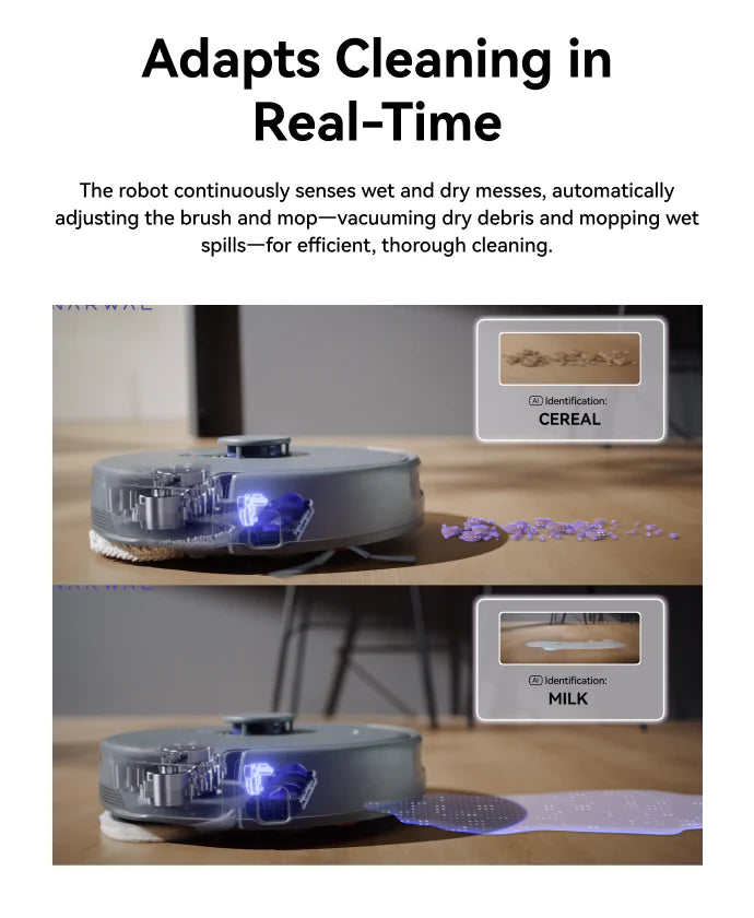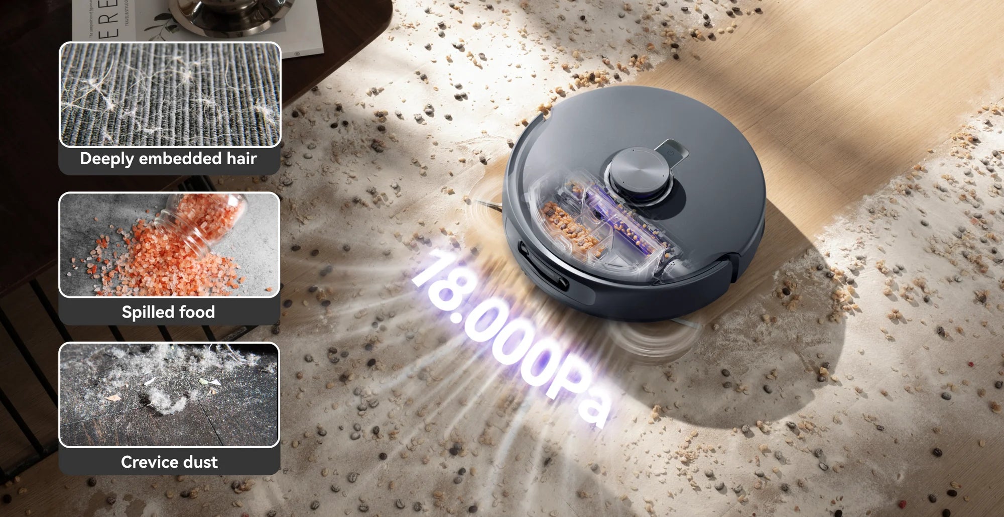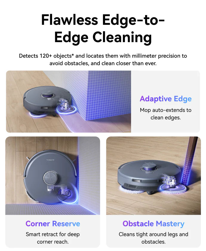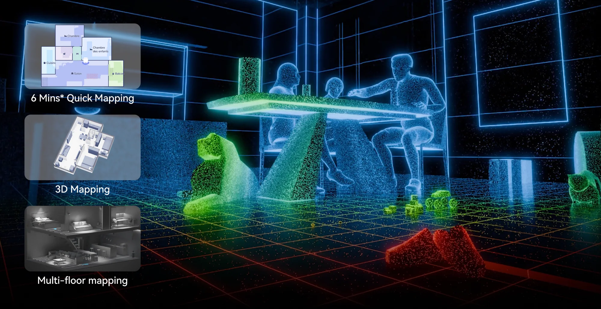 Scans your house and surroundings in full 360° to instantly create a detailed 4-layer 3D map, and plan the most efficient route.