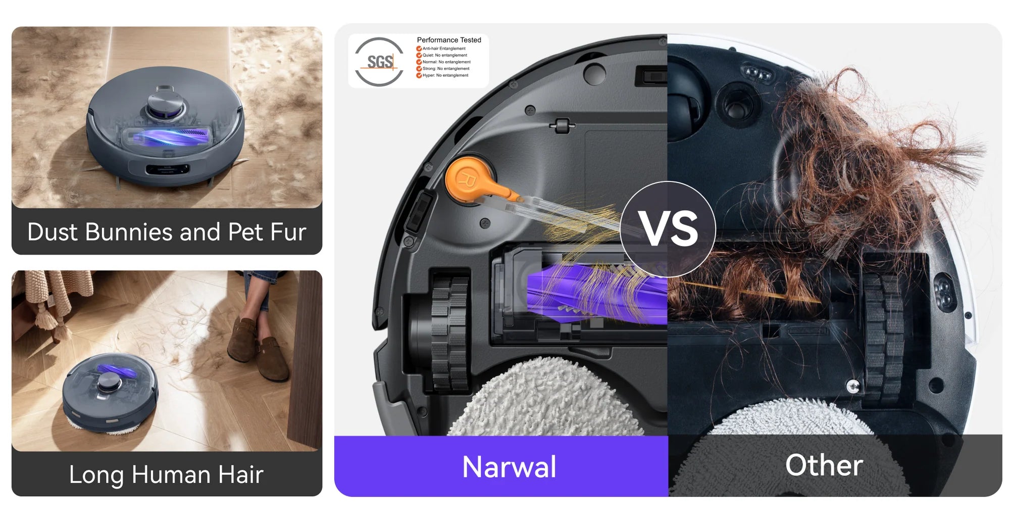 The side brushes and floating roller brush are cleverly engineered to prevent hair from getting stuck in awkward areas, making maintenance simple and infrequent.