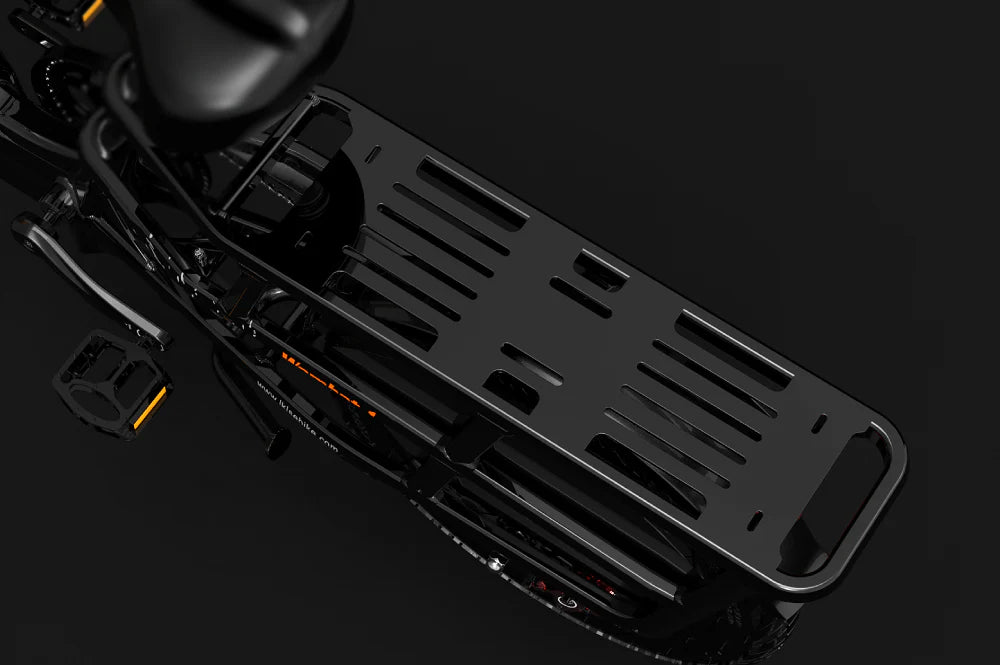 The Wombat-1 Rugged Rear Rack can support up to 90 kg, with the bike's total maximum load reaching 200 kg. It can also accommodate an extra rear storage basket, rear frame armrests, or pedals, based on your requirements.